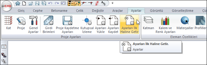 Proje ayarlarınızı ilk haline getirmek için Ayarları Sıfırla ikonuna tıklayın. Ayarlarınız sıfırlanacaktır.