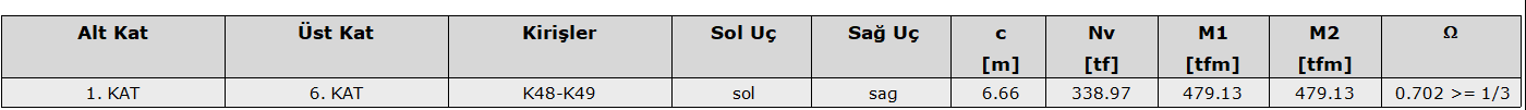 Bağ derecesi katsayısı ve bağ kirişli perde tanımlarına uygun olup olmadıkları Denklem 4.14 ve 4.15 ile otomatik hesaplanır ve gereken durumlarda uyarı verilir