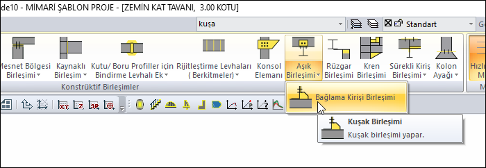 Birleşim sekmesinden Bağlama Kirişi Birleşimi satırını tıklayın.