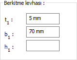 Berkitme levhası ![]() Berkitme levhası değer girilerek belirlenir. Girilecek değerler şematik çizimde gösterilmektedir. |