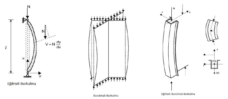 Eksenel basınç kuvveti etkisindeki elemanlarda yerel ve genel burkulma olmak üzere 2 ana tip burkulma mevcuttur.