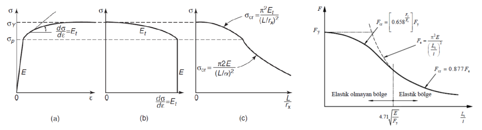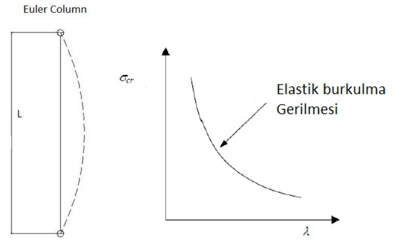 Elastik Burkulma teorisinde malzeme elastik yani gerilme – şekil değiştirme eğrisi doğrusaldır. Malzeme gerilme – şekil değiştirme eğrisinin doğrusal olmadığı bölgede basınç kapasitesi farklıdır ve Elastik burkulma kapasitesinden azdır.
