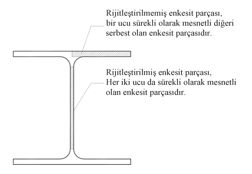Rijitleştirilmiş Enkesit Parçası: Basınç kuvveti doğrultusuna paralel iki kenarı boyunca enkesitin diğer bir parçası ile bağlanan, basınç etkisindeki enkesit parçalarıdır.