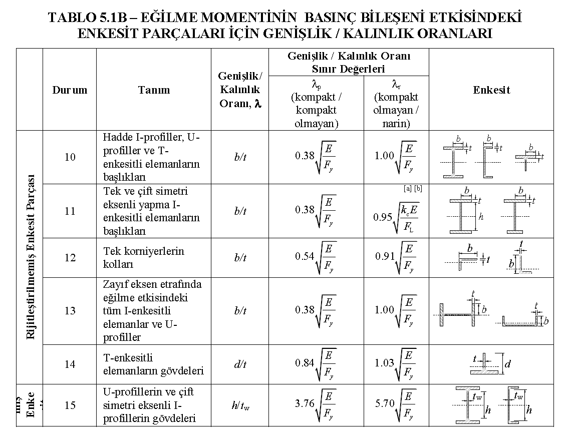 Eğilme momentinin basınç bileşeni etkisindeki enkesit parçaları; (Çelik yapıların tasarım,hesap ve yapım esasları)