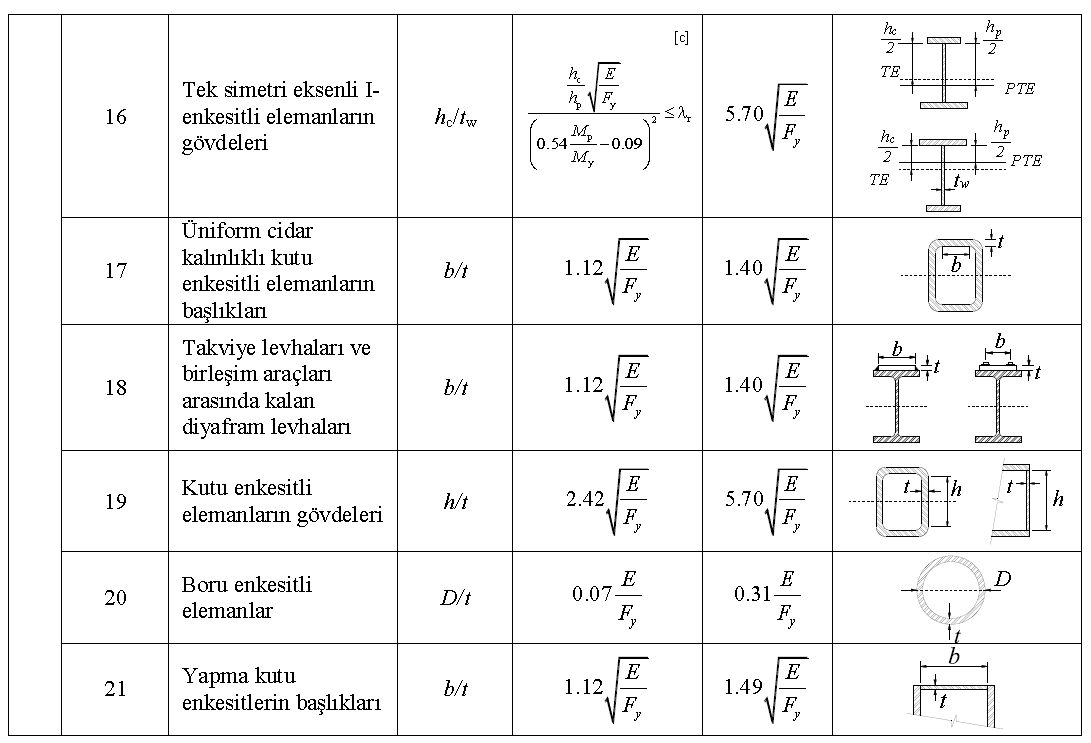 Eksenel basınç kuvveti etkisindeki enkesit parçaları; (AISC 360-16)
