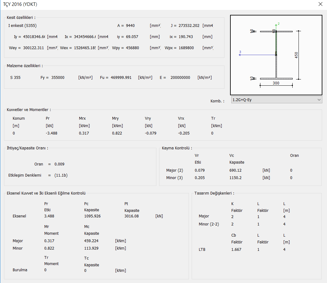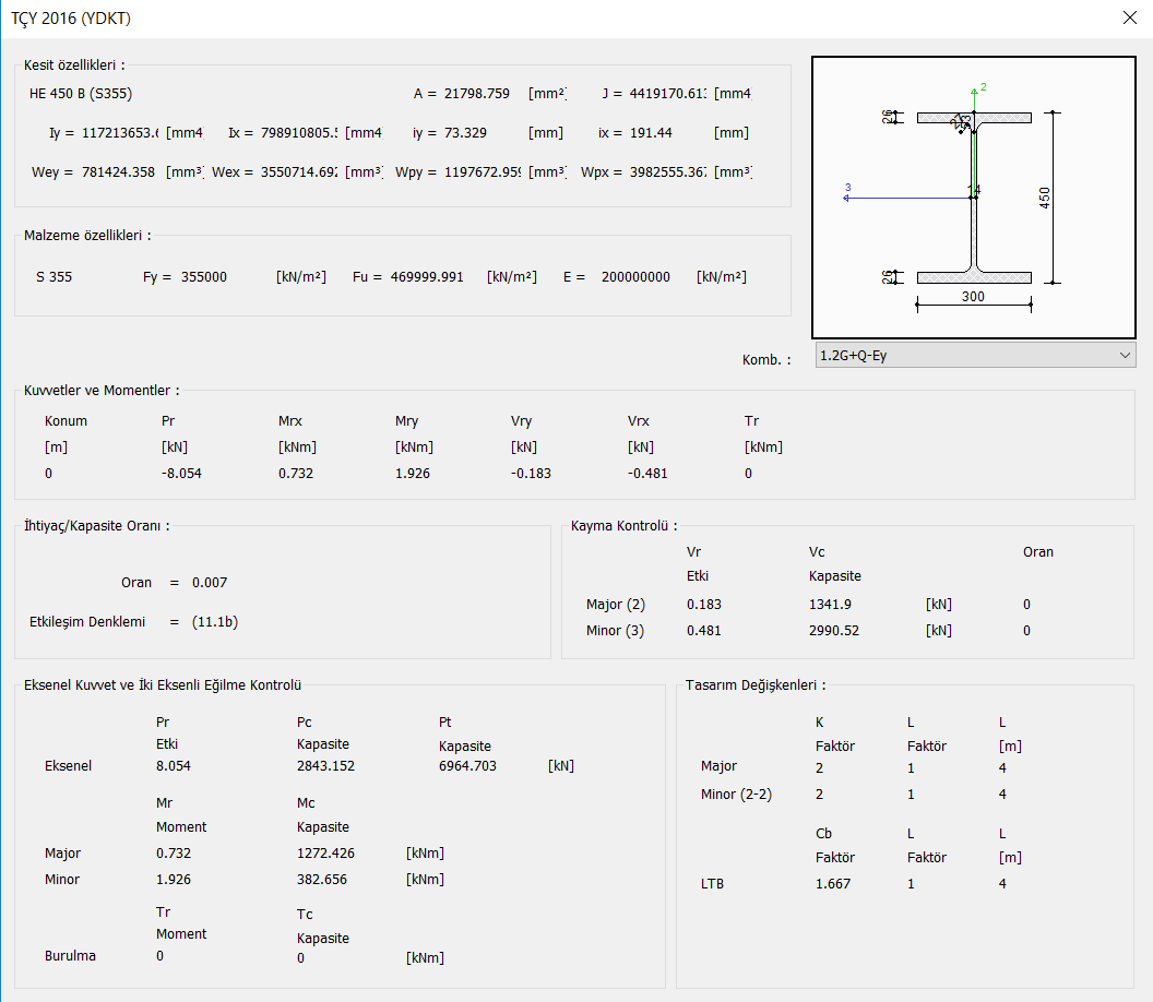 HE 450 B enkesitli L = 4.0 m boyundaki elemanın karakteristik eksenel basınç kuvveti dayanımı ve elemanın tasarım basınç kuvveti dayanımının bulunması;
