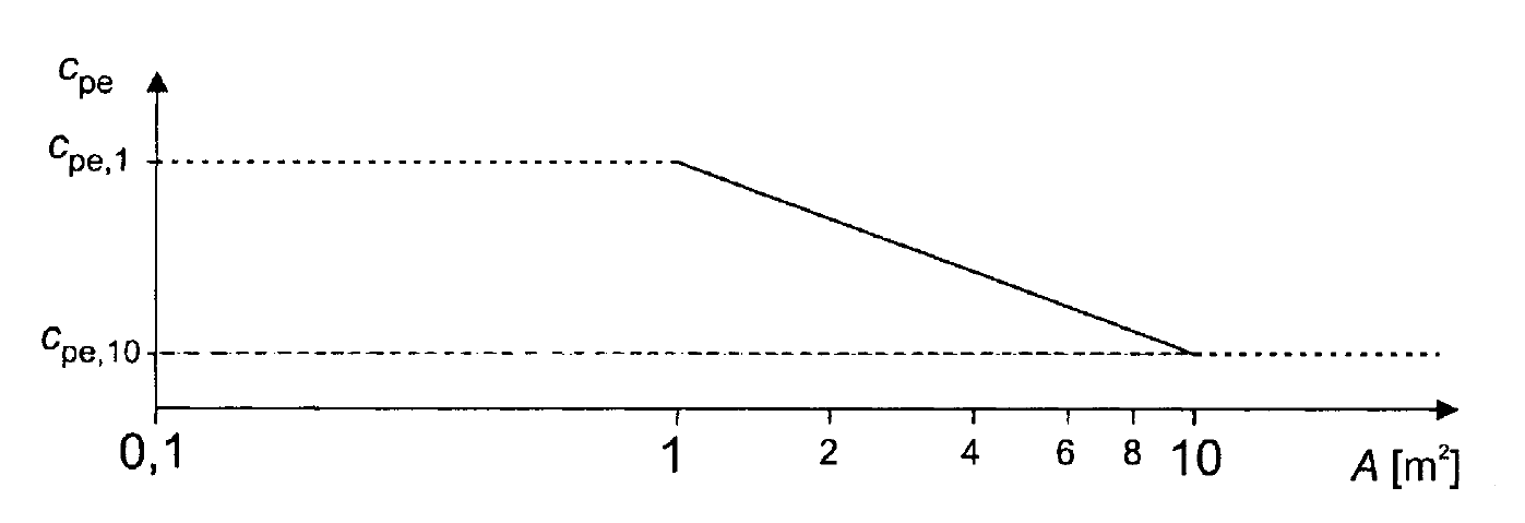 Binalar ve bina bölümleri için dış basınç katsayıları cpe, hesaplama yapılacak kesitteki rüzgâr etkisini oluşturan yüklenmiş yapı alanı A ’nın boyutuna bağlıdır. Dış basınç katsayıları, uygun bina şekillerine göre tablolarda 1 m2 ve 10 m2 'lik yüklü alanlar A için sırasıyla cpe,1 ve cpe,10 olarak verilmiştir. ideCAD Statik dış basınç katsayısı olarak cpe,10 katsayıları kullanılmaktadır.