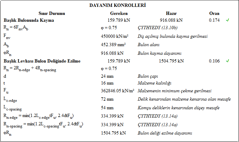 Başlık Levhalı Bulonlu Birleşim Raporu 2
