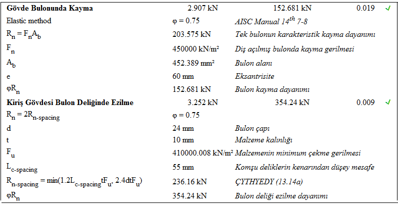 Başlık levhalı bulonlu birleşim tasarımı Çelik Yapıların Tasarım, Hesap ve Yapım Esasları (ÇYTHYEDY), AISC 360-16, AISC 358-16 ve TBDY yönetmeliklerine göre otomatik yapılır ve birleşim raporu oluşturulur.