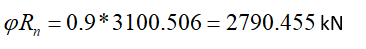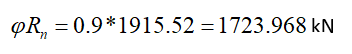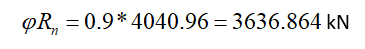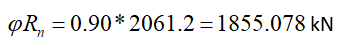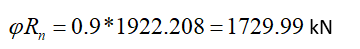1628.396 kN | 1848 kN | 0.881 | √ |