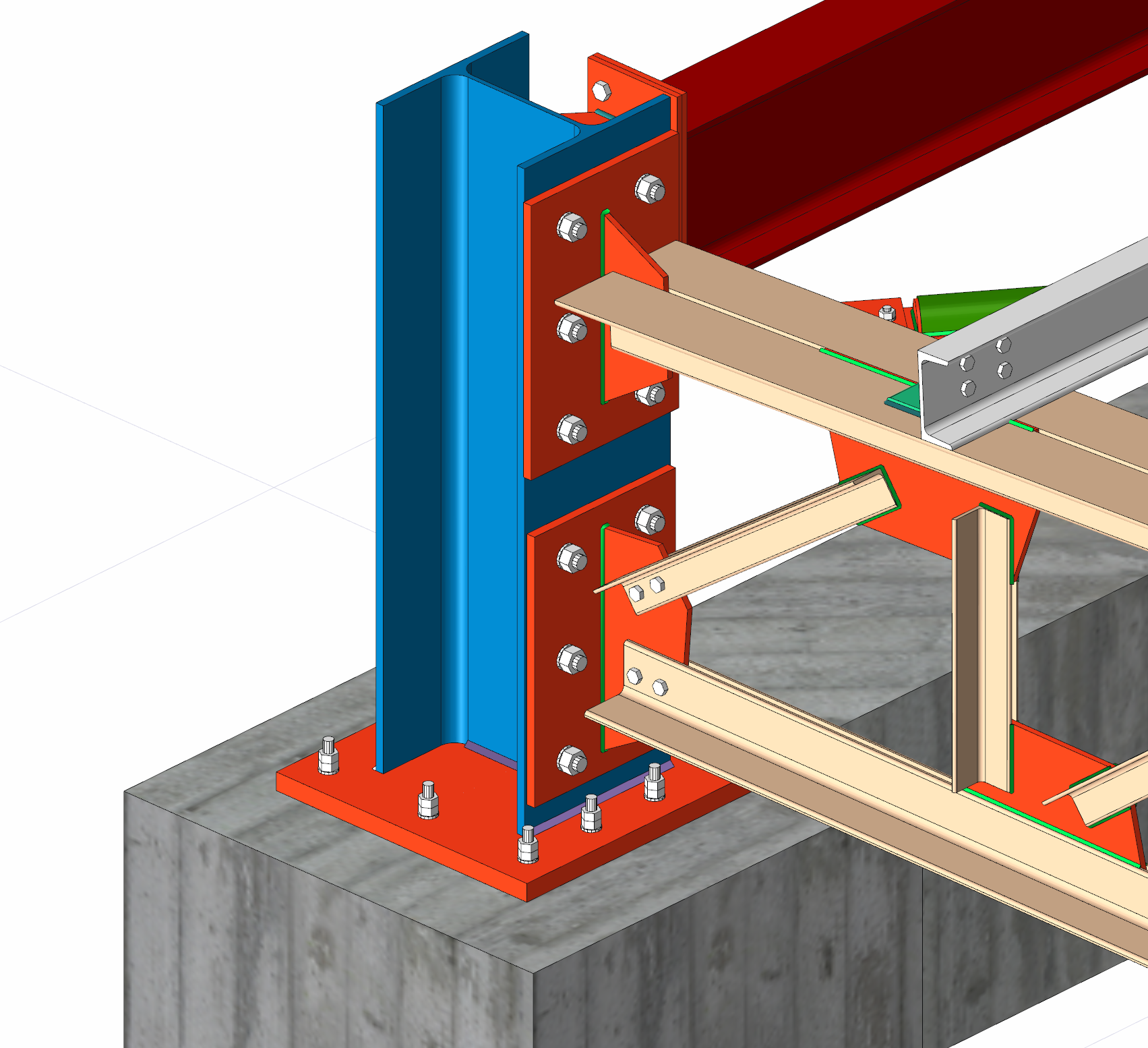 Nihayetinde aşağıda gösterildiği gibi bir makas-betonarme kolon bağlantısı elde edebilirsiniz.