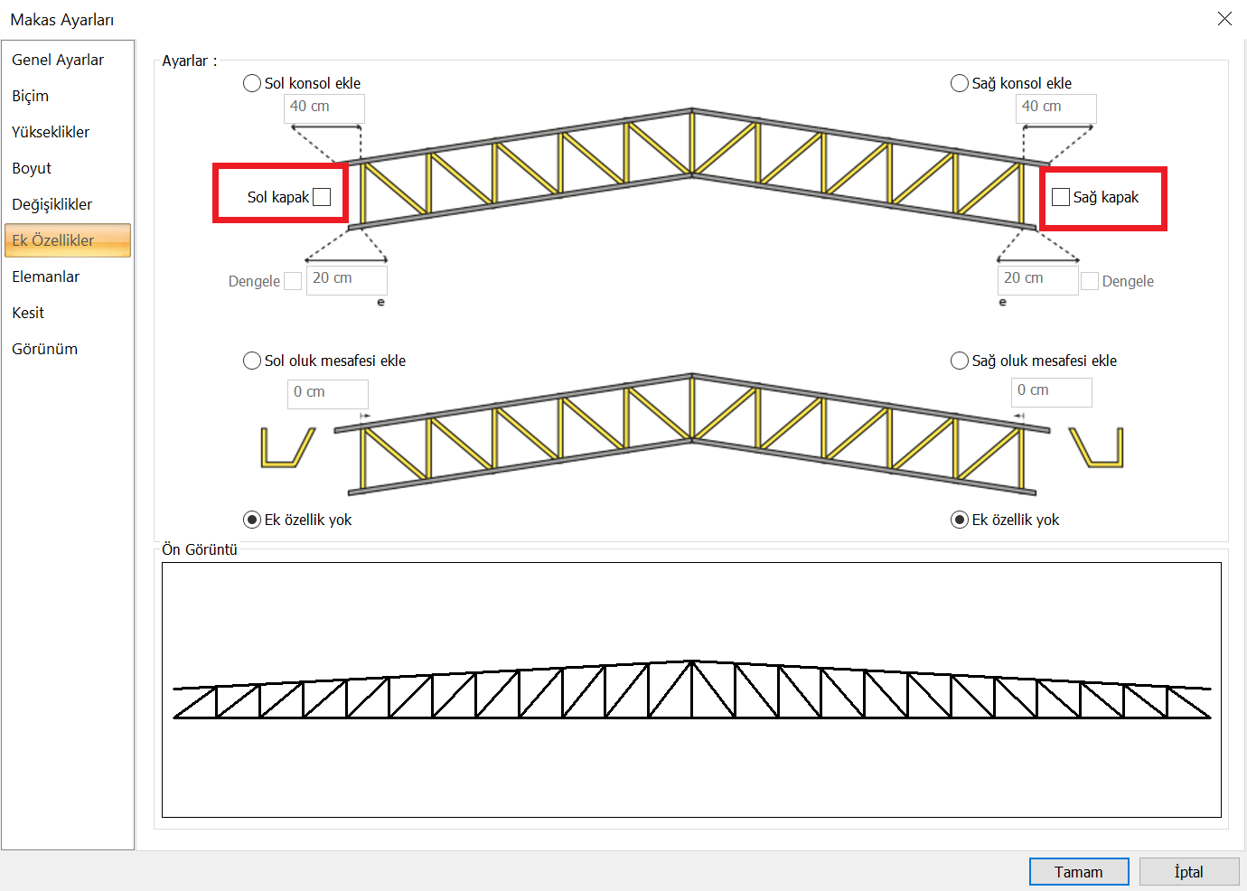 “Makas” komutunu kullanarak uygun yükseklikte bir makas tanımlayın. Tanımladığınız makasın “sol kapak” ve “sağ kapak” komutlarını inaktif hale getirin.