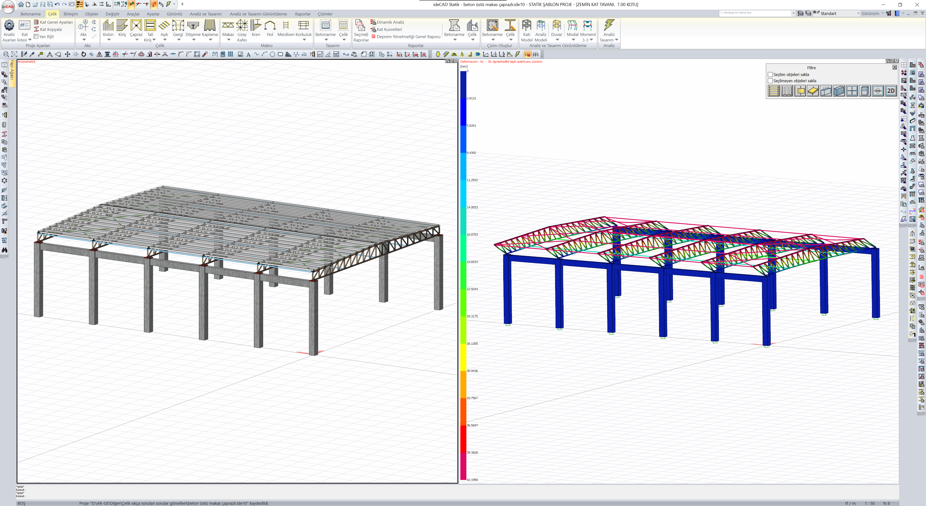 Betonarme bir kolonun üzerine çelik koloncuk tanımlayarak bu makası betonarme kolona bağlayabilirsiniz. Bu tip bağlantıya “moment aktaran makas” adı da verilmektedir.