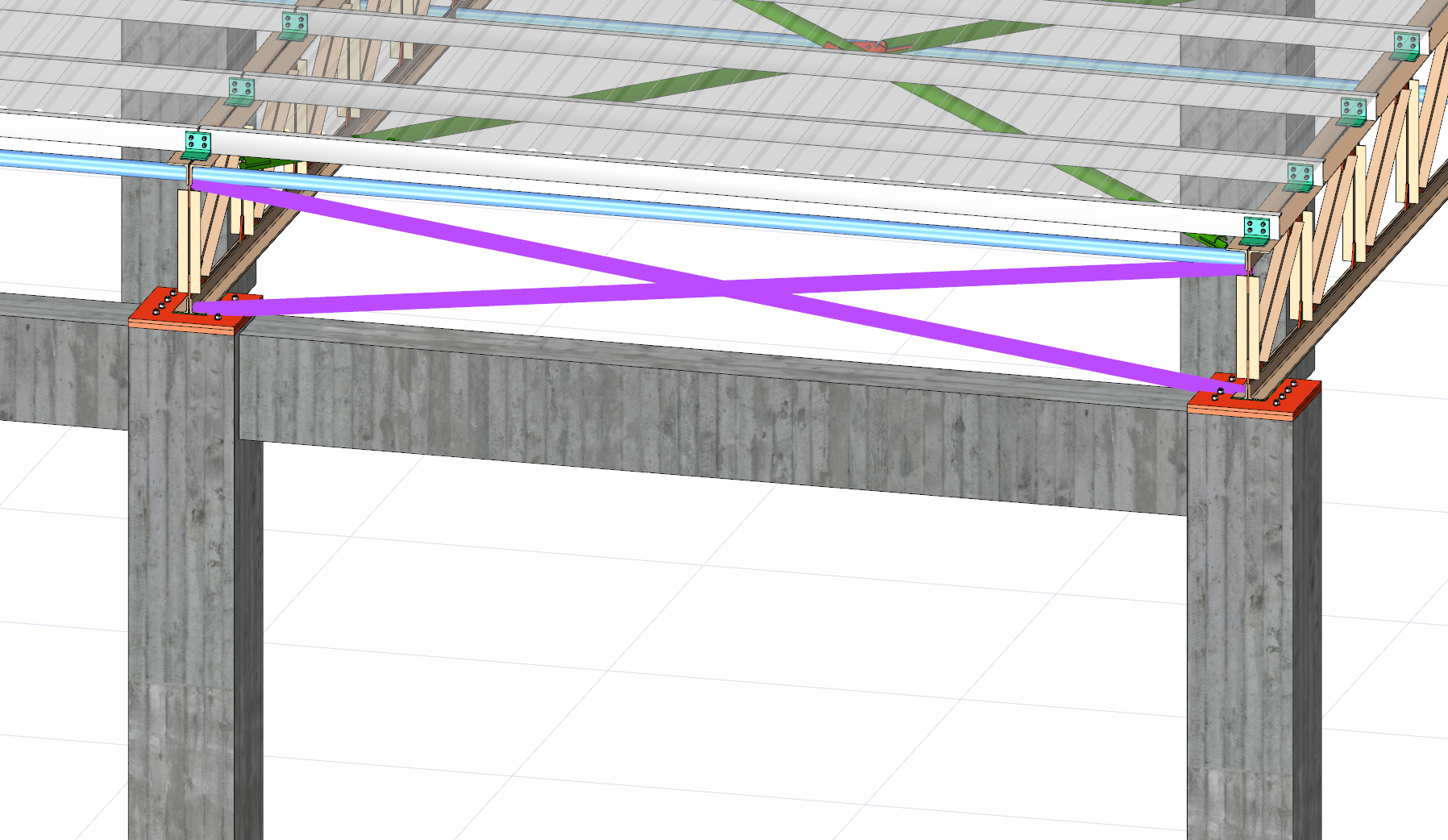 Bu durumun engellenmesi için aşağıda işaretli elemanlar gibi stabilitenin sağlanacağı çaprazların girilmesi gerekmektedir. Bu durumda oluşabilecek ikinci mertebe etkileri önlenmiş olacaktır.