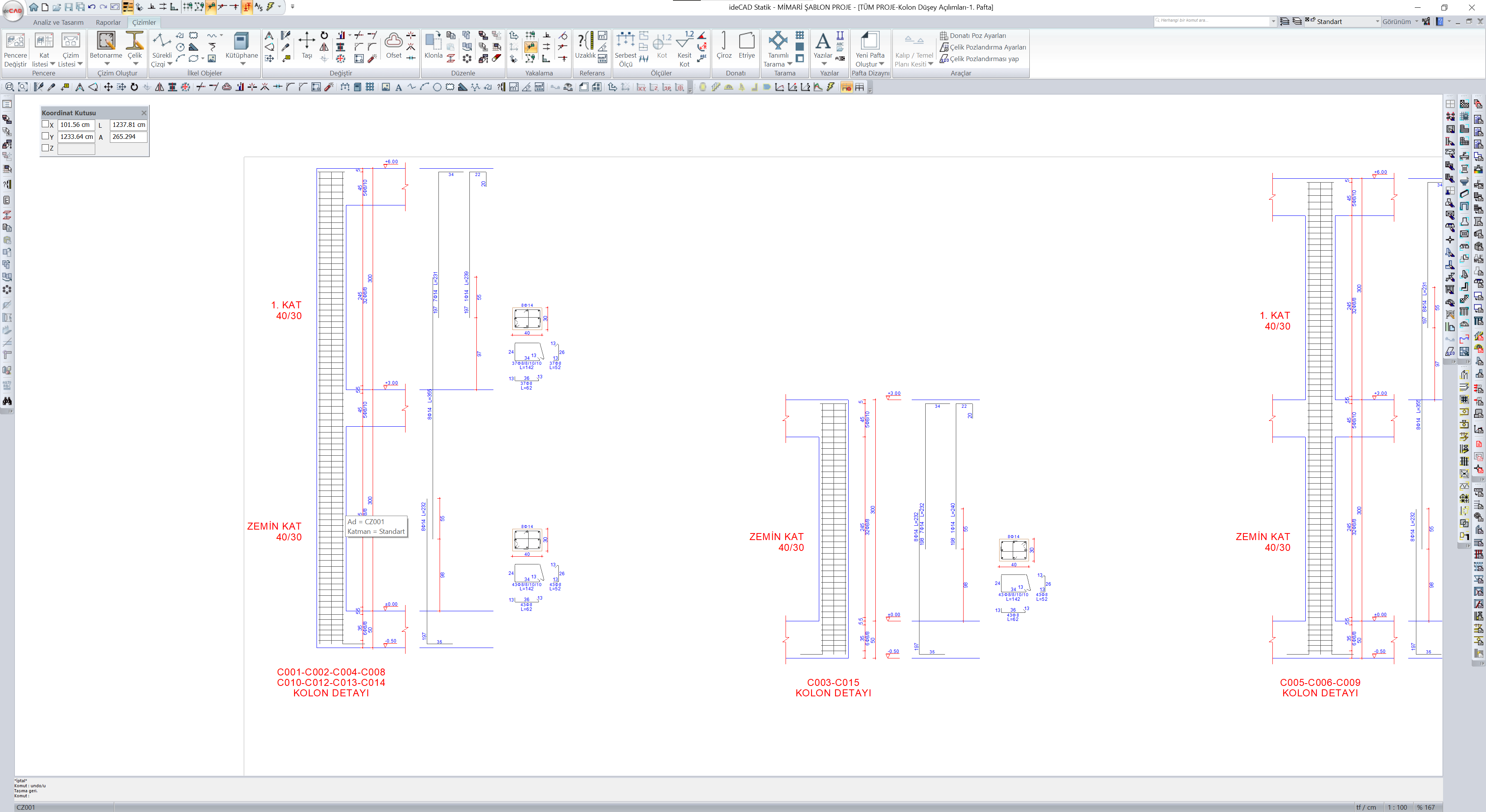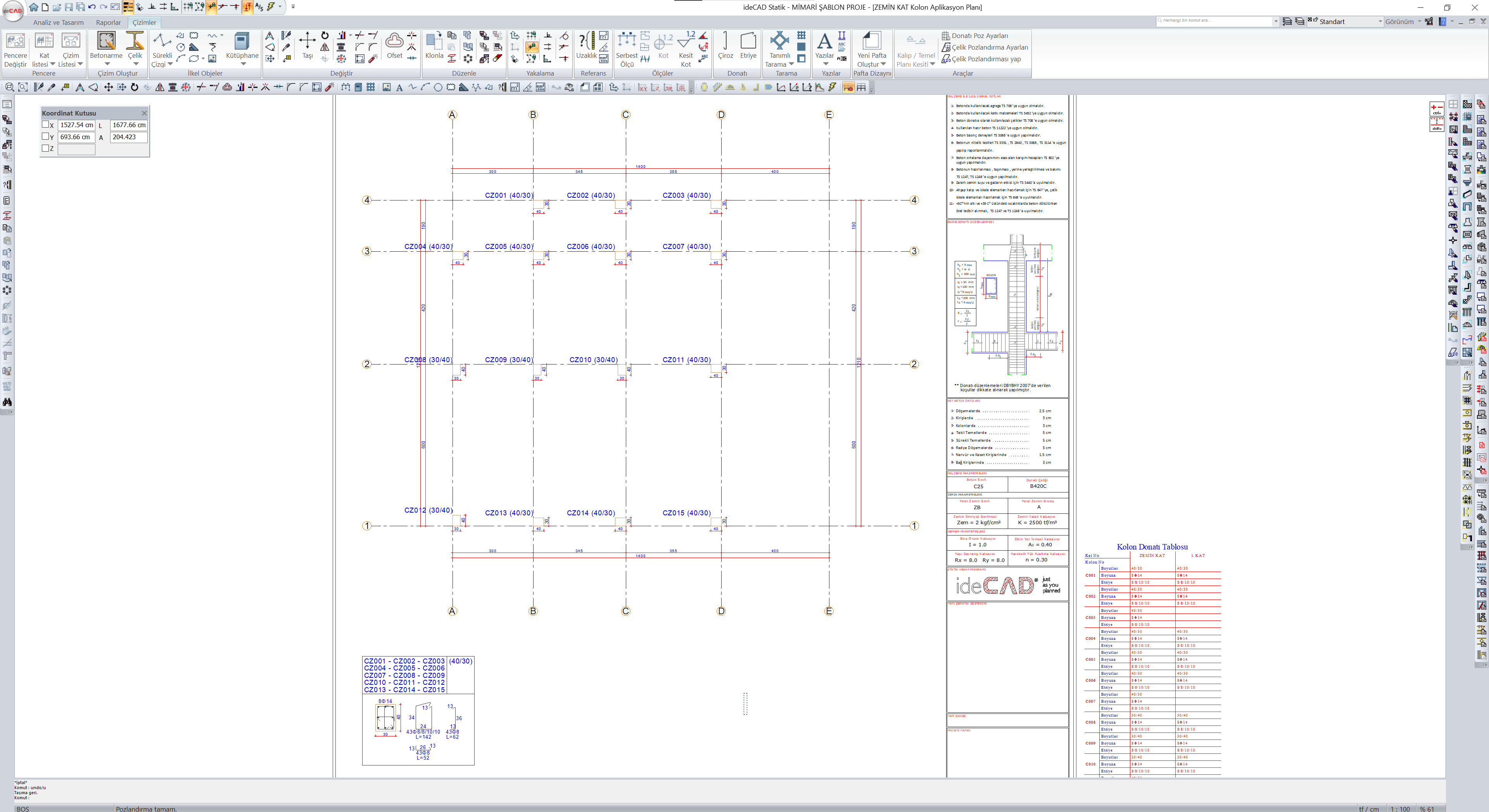 Betonarme listesinden Kolon Aplikaston Planı komutuna tıklayın.