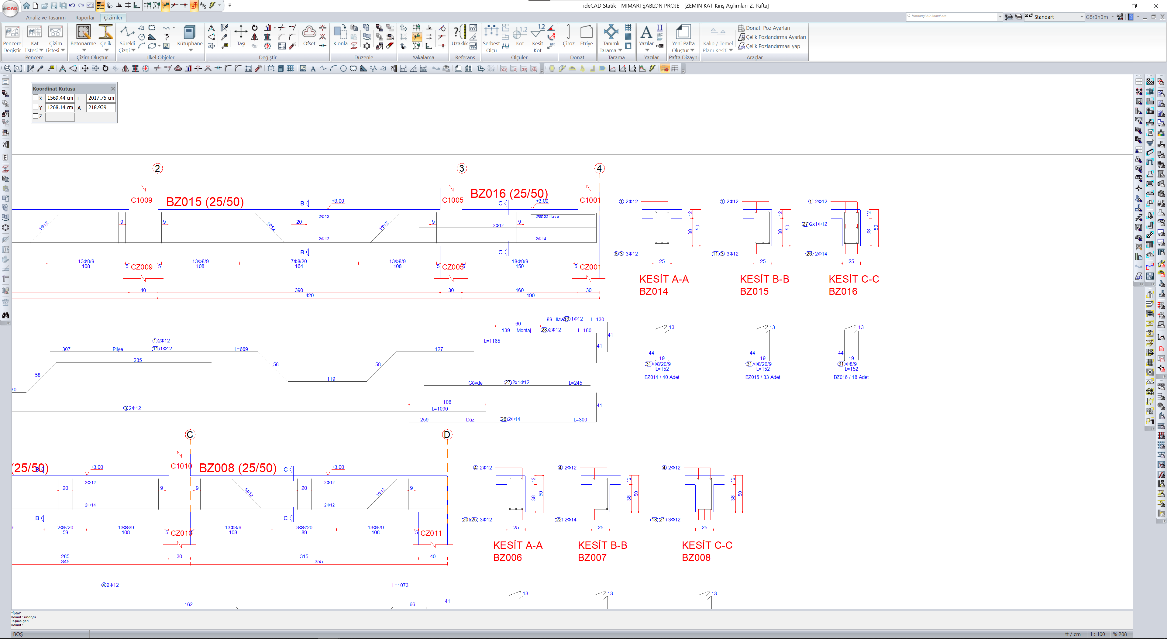Raporları alınan yapı bilgi modelinin betonarme çizimleri oluşturulur.