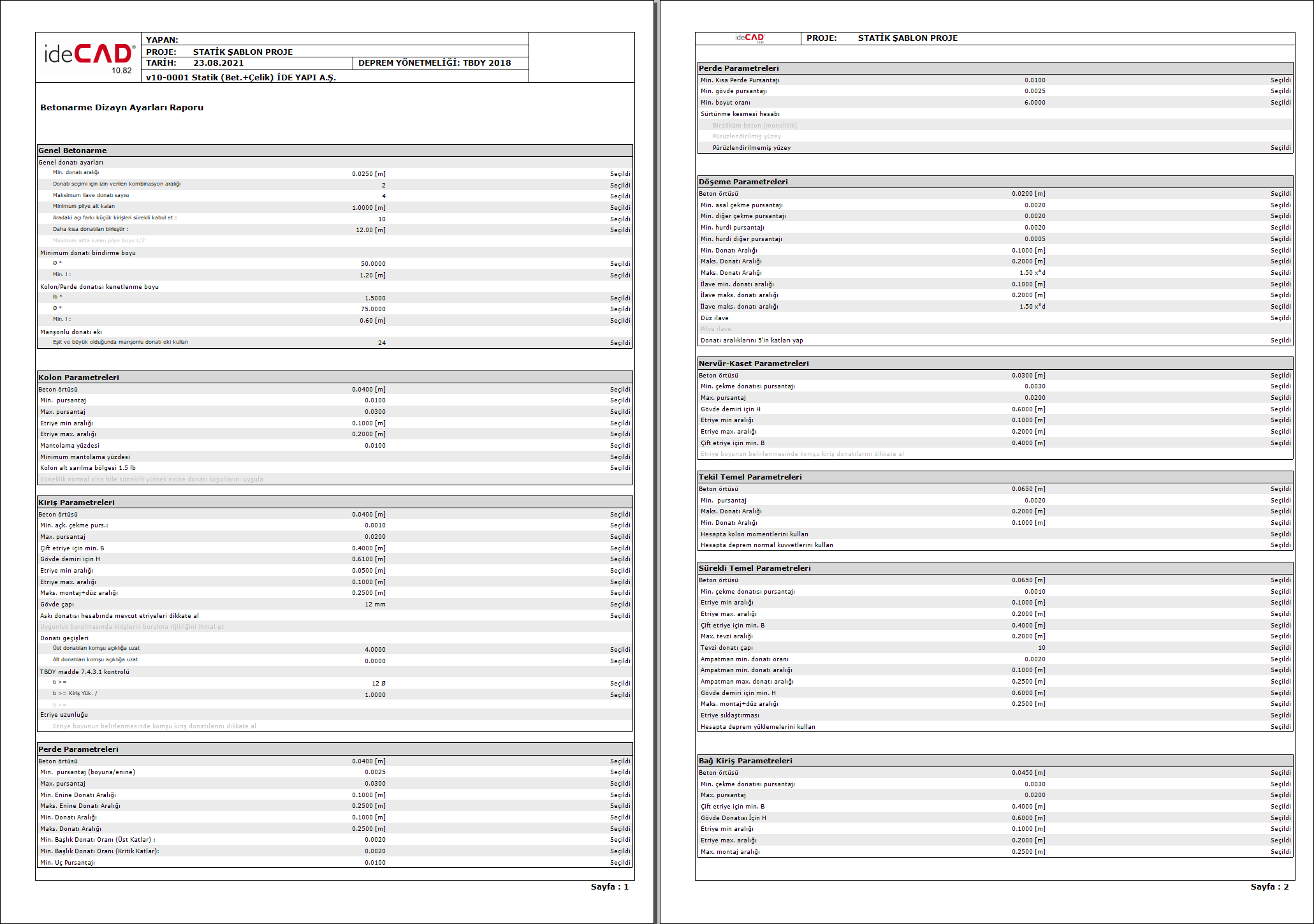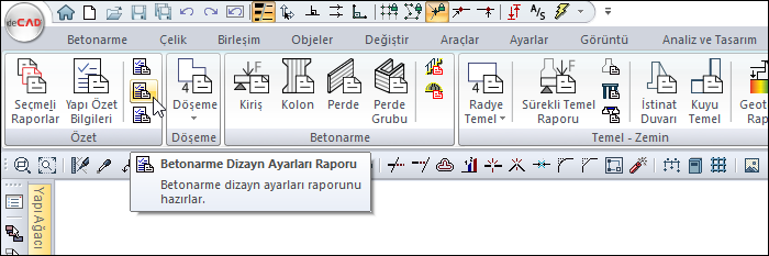 Betonarme Dizayn Ayarları Raporunun Yeri