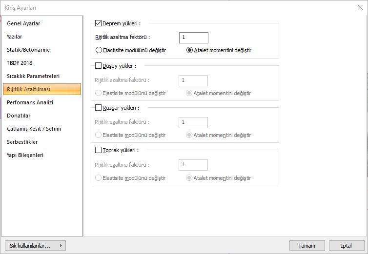 Rijitlik azaltma faktörleri ![]() İlgili eleman için sıcaklık hesabında kulllanılacak rijitlik azaltma faktörünü verilir. |