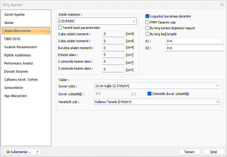 Betonarme Kiriş Ayarları