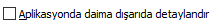 Aplikasyonda daima dışında detaylandır ![]() Seçenek işaretlendiğinde kolon, kolon aplikasyon planında yerinde detaylandırılmaz, bunun yerine kolon, ölçülendirilmiş plan görüntüsü şeklinde çizilir. Detay açılımı ise pafta kenarında ayrıca gösterilir. |