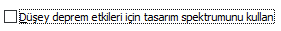 Düşey deprem etkileri için tasarım spektrumunu kullan ![]() İşaretlenmesi halinde TBDY 2018 Madde 4.4.3.1’de belirtilen referans maddelerine göre düşey elastik ivme spektrumu dikkate alınarak seçilen elemanlarda uygulanır. Bu etkiler Ez(R) kombinasyonu olarak görünür. İşaretlenmediğinde TBDY Madde 4.4.3.2’de belirtilen esaslara göre düşey deprem etkisi Ez(G)=2/3*SDS*G formülünden hesaplanır ve bu etkiler Ez(G) kombinasyonu olarak görünür. |