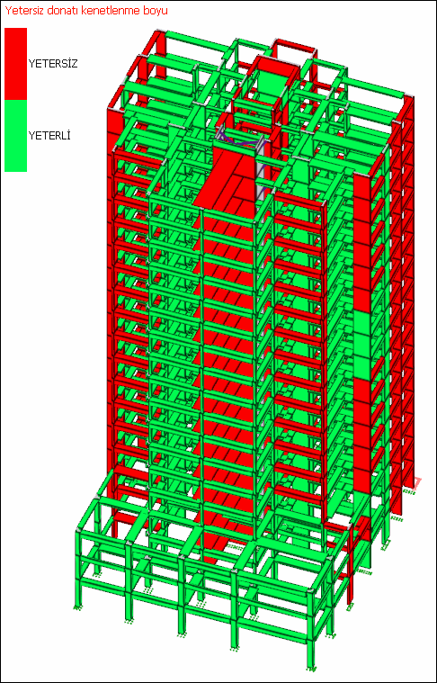 Donatı alanı yetersizliği ![]() Kesitindeki mevcut donatısı gereken donatıdan küçük olan elemanlar görünüş penceresinde kırmızı renge boyanır. Yeterli olanlar yeşil renkte görünür. ![]() |