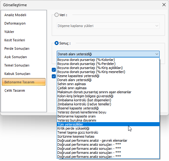 Betonarme Tasarım Sonuç Görünümü Özelliğinin Yeri