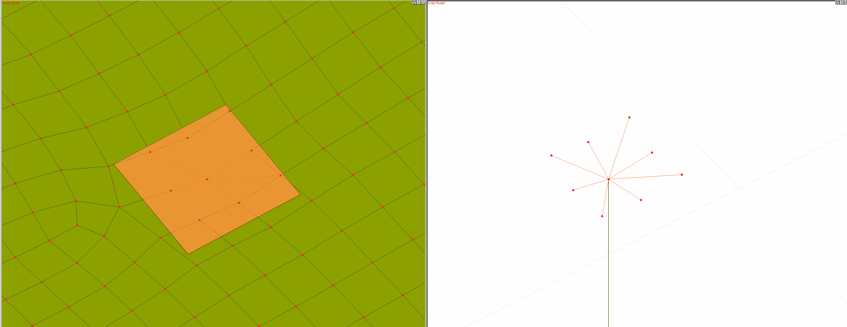 Aşağıdaki resimde kirişsiz döşeme için kolon-döşeme bağlantıları gösterilmiştir. Döşemelerin kolonlara yakınlaştığı bölümlerde sonlu elemanlar kolon ile uyumu oluşturulur. Kolon alanı içerisine giren shell elemanlarının düğüm noktaları kırmızı link elemanı ile kolon düğüm noktasına bağlanır.