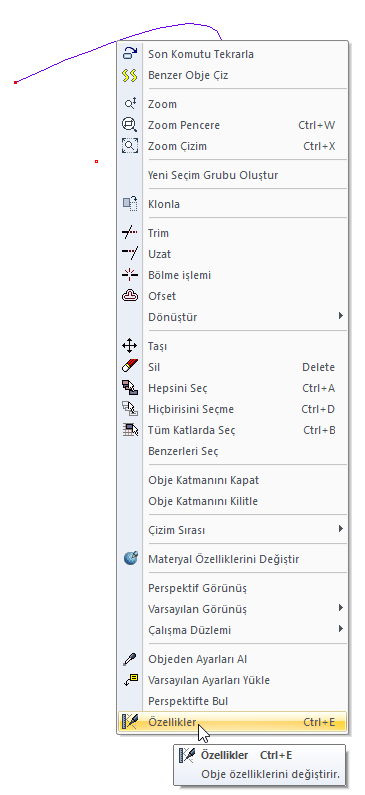 Eğri çizimini bitirmek için farenin sağ tuşunu tıklayın.