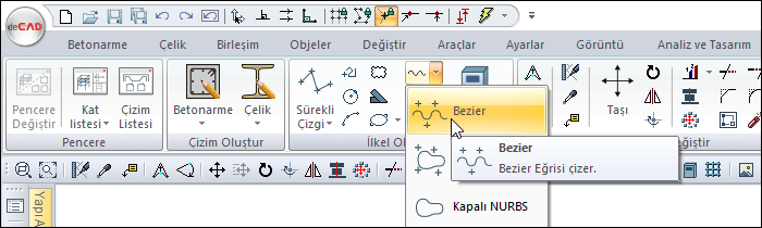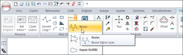 Ribbon menüde Bezier ikonunu tıklayın.