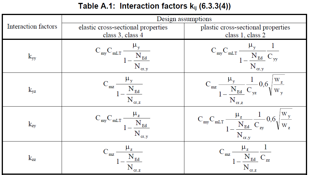where NEd, My,Ed and Mz,Ed are the design values of the compression force and the maximum moments