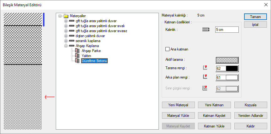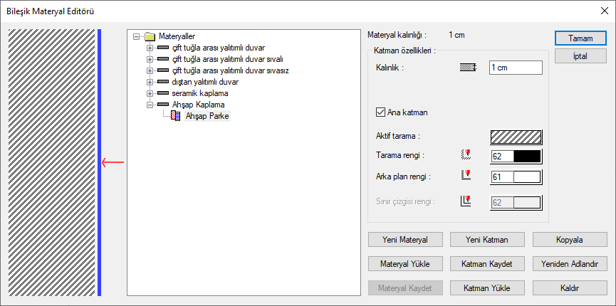 Materyal Yükle ![]() Daha önce tanımlanmış bir materyali yüklemek için kullanılır. |