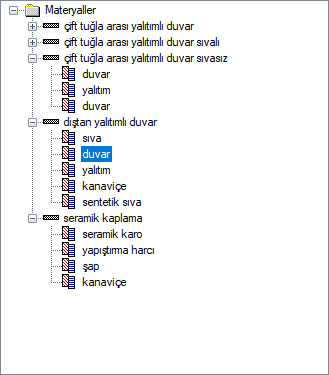 | Materyal listesi  Projede yüklü olan bileşik materyaller |