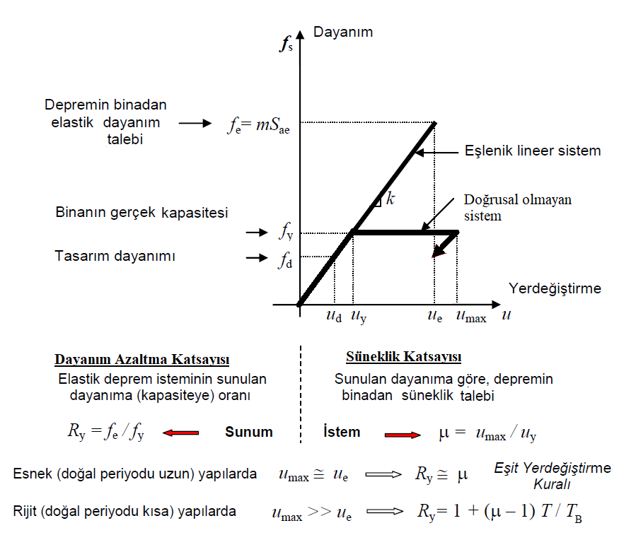 fy(µk,T) = Öngörülen süneklik kapasitesi ve periyoda bağlı akma dayanımı