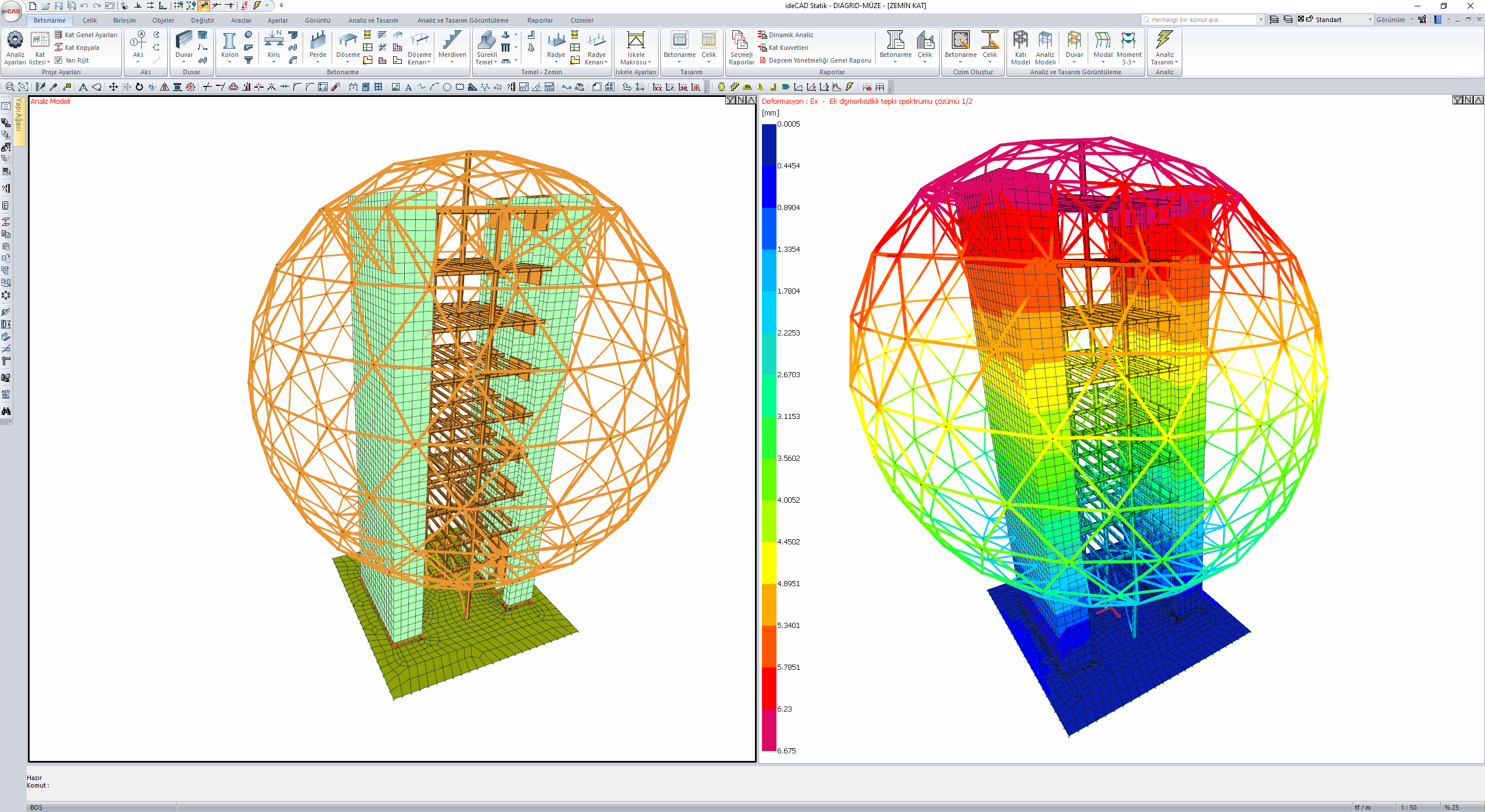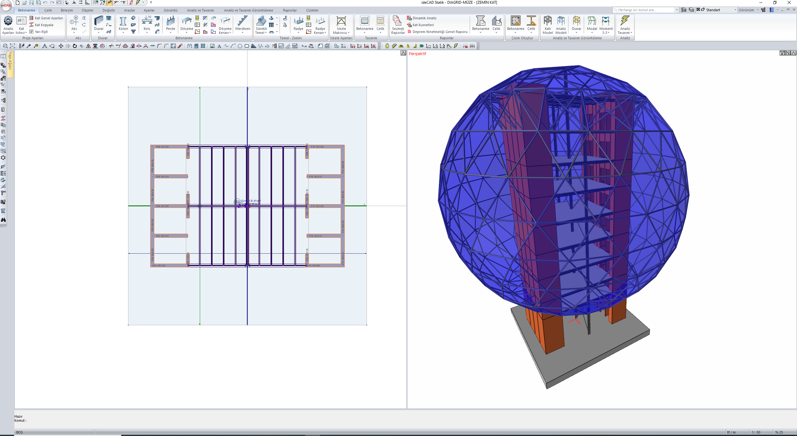 Bina taşıyıcı sistemleri 3 boyutlu analiz modeli otomatik oluşturulur.