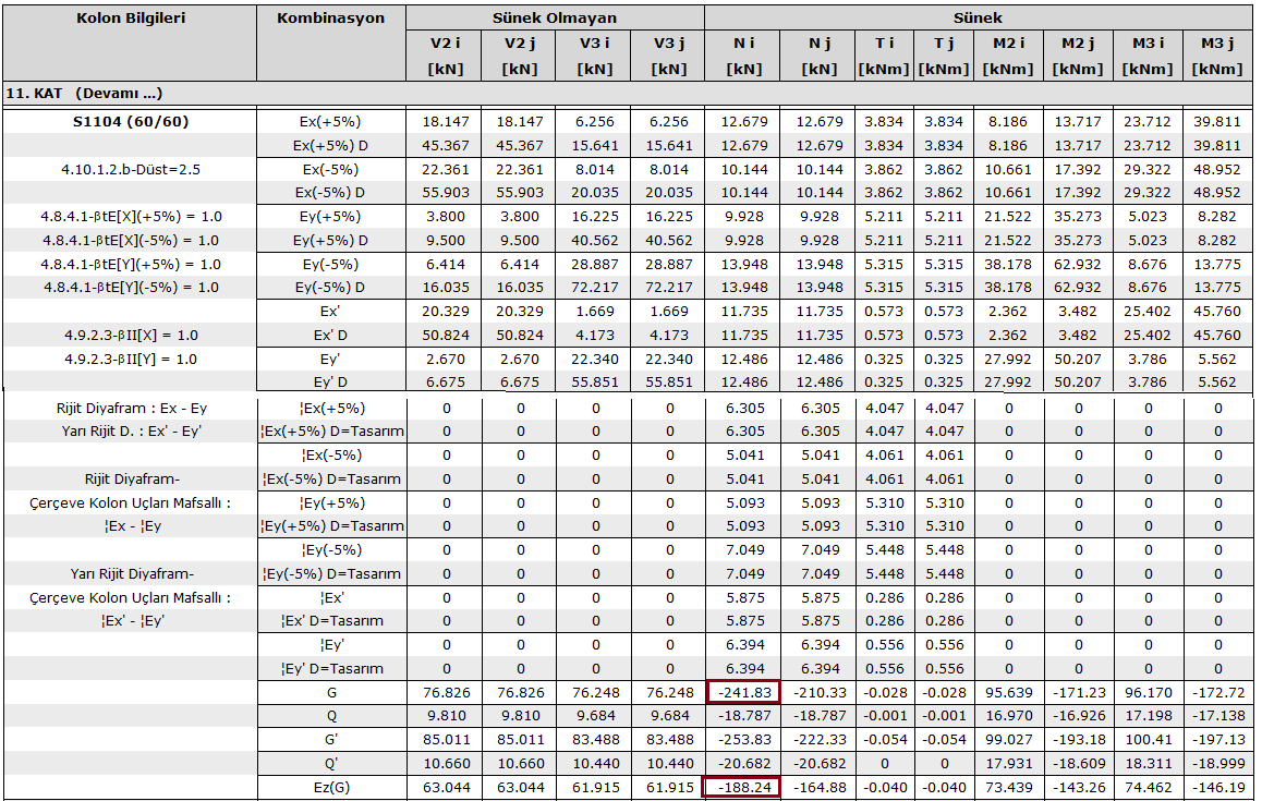Kolon iç kuvvet sonuçlarında da bu oran şu şekilde kontrol edilir.