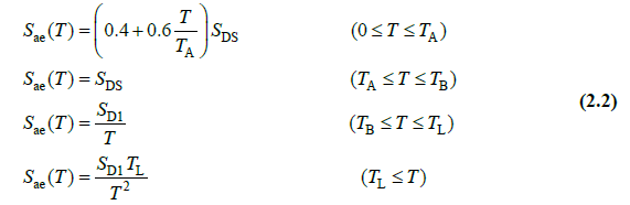 Gözönüne alınan herhangi bir deprem yer hareketi düzeyi için yatay elastik tasarım ivme spektrumu’nun ordinatları olan yatay elastik tasarım spektral ivmeleri Sae(T), doğal titreşim periyoduna bağlı olarak yerçekimi ivmesi [g] cinsinden tanımlanmıştır.