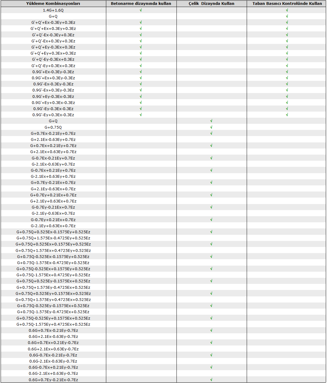 Binanın Yükleme Kombinasyonlarının Oluşturulması