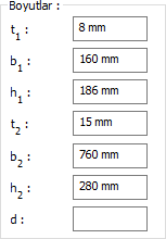 Grup 1 ![]() Bulon uzaklık değerleri girilir. Girilecek değerler şematik çizimde gösterilmektedir. |