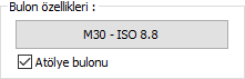 Bulon özellikleri ![]() Bulon özellikleri butonu tıklanarak Delik ve Bulon Paramatreleri diyaloğu açılır. Bulon özellikleri bu diyalogdan ayarlanır. |