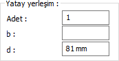 Yatay yerleşim ![]() Bulonların yatay yerleşim uzaklık değeri ve sayısı girilir. Girilecek değerler şematik çizimde gösterilmektedir. |