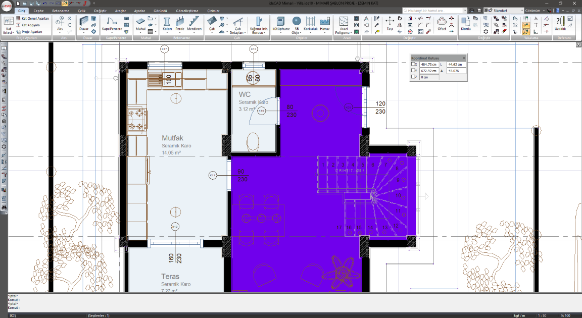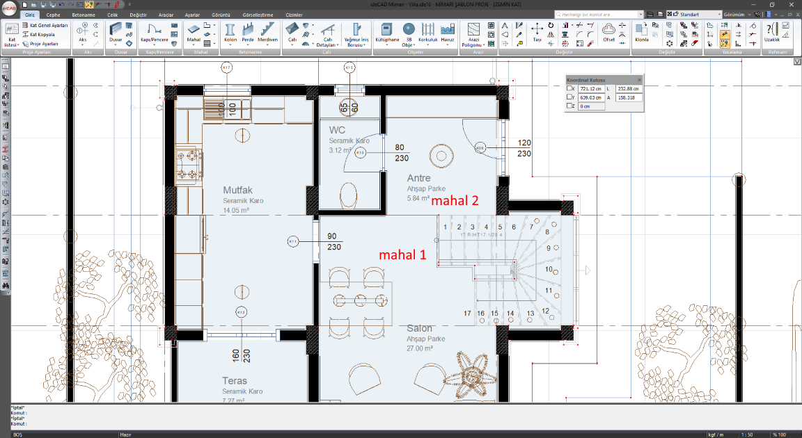 Diğer alanınıza mahal tanımlamak için klasik menüde Çiz/Objeler/Mahal/Mahal satırını ya da toolbardan Mahal ikonunu, ribbon menüde Giriş/Mahal/Mahal ikonunu tıklayın.