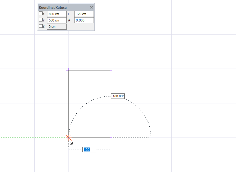 Uzunluk girmek için klavyeden L tuşuna basın. Uzunluk değeri olarak 120 (cm) girin ve Enter tuşuna basın.