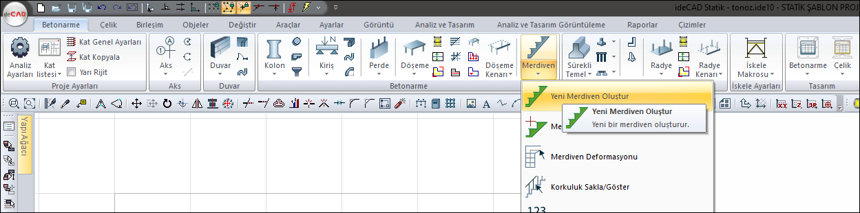 Ribbon menüden Yeni Merdiven Oluştur ikonunu tıklayın.