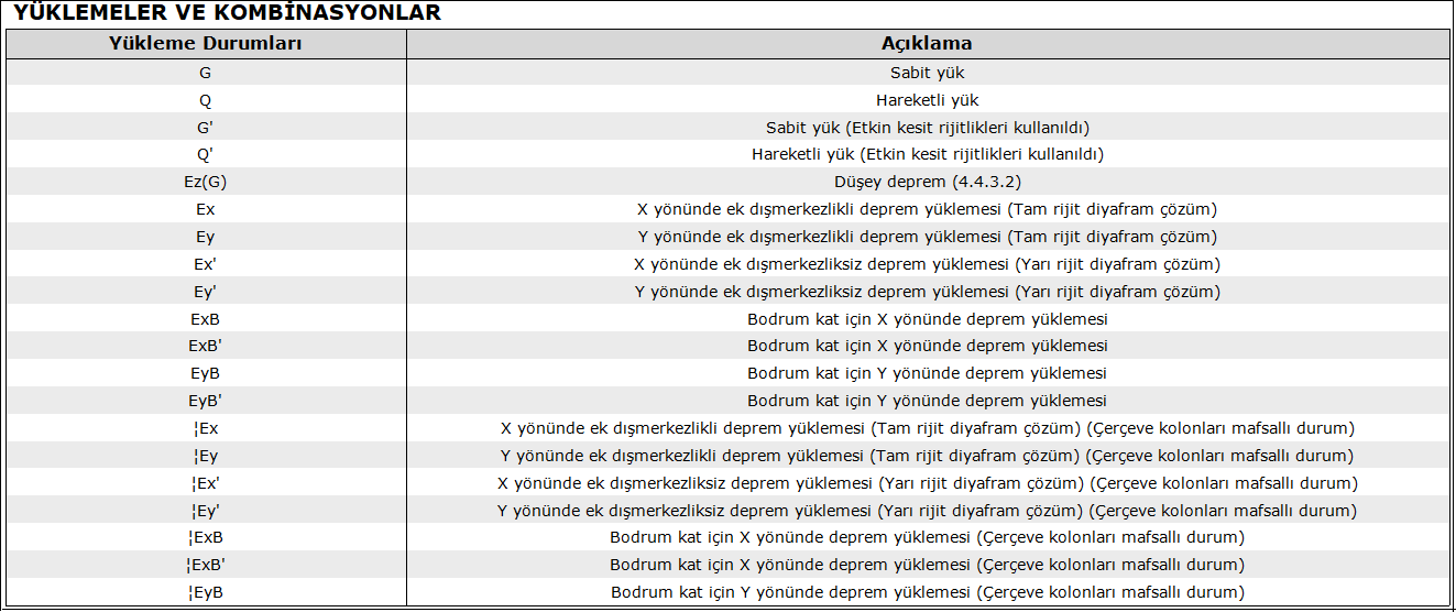 - Öncelikle ideCAD’in kullandığı sembollerle yapılan analizlerin madde özetleri aşağıdaki tabloda açıklanmıştır.