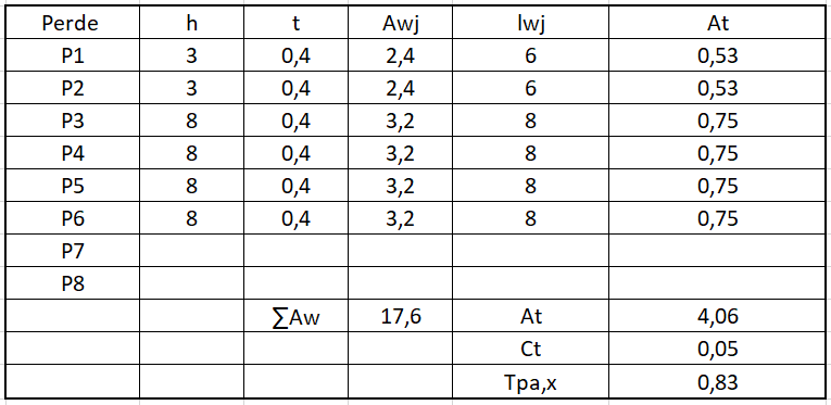 - Deprem etkilerinin tamamının betonarme perdeler tarafından karşılandığı binalarda, Ct aşağıdaki denklem ile hesaplanır. Bu hesapta perde net alanları kullanılmıştır.