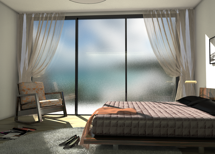 Saçılma ve örnekleme değerleri artırılarak materyale buzlu cam özelliği verilir.