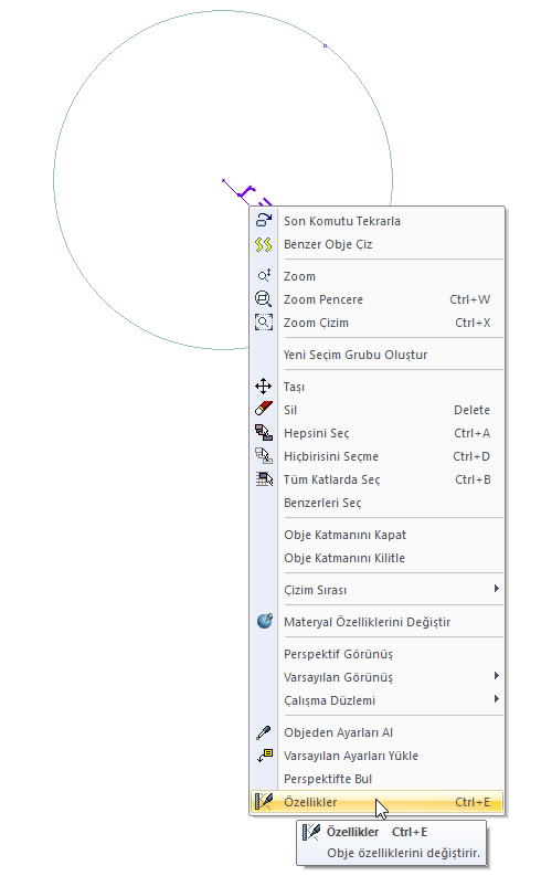 Çember aksı sol tuş ile tıklayın.