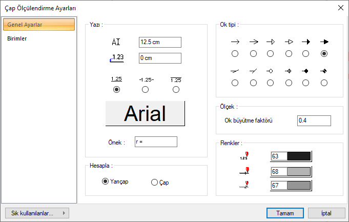 Çap Ölçülendirme Ayarları - Genel Ayarlar Sekmesi