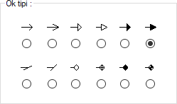 Ok tipi ![]() Çap ölçülendirme oku için verilen 12 gösterim tipinden biri seçilir. |